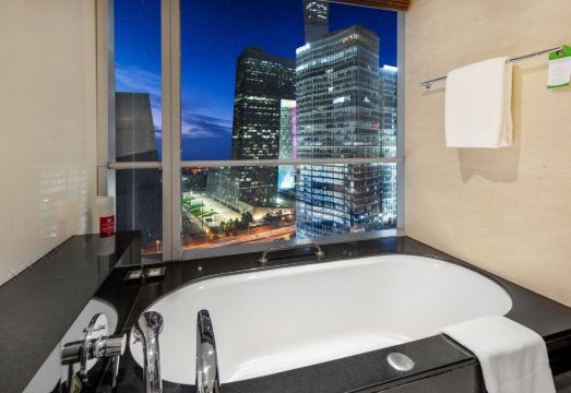 入住于北京千禧大酒店(Grand Millennium Beijing)恣享北京商务区酒店时尚奢华的生活 :北京千禧大酒店地理位置优越,伫立于中国首都的商务区,毗邻中央电视台、国贸中心、京广中心,交通十分便利,可让您轻松前往城市的各大景点,尽情领略它的时尚、文化与艺术气息。全新的央视总部大楼和世贸天阶购物中心也近在咫尺。 奢华格调与便捷陈设在此巧妙融合。北京千禧大酒店拥有 521 间客房,每间都设有开阔的浴室、开放式空间及宽大的落地窗,带来温馨舒适的住宿体验。更有覆盖整间酒店的无线网络及多个会议和活动场地可供使用,使之成为商务旅客的理想下榻选择。这里还配有室内泳池、健身房和水疗中心,可让您重焕身心活力。此外,您还可前往各个餐厅与酒吧享用国际美食、葡萄酒和啤酒。入住于此,尽享奢华生活。